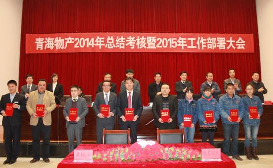2015年1月31日,青海省物產集團總公司召開"青海物產經營發(fā)展2014年總結考核暨2015年工作部署大會"。 會議由集團紀委書記李志明主持,省國資委黨委委員、副主任崔文德,省國資委第二監(jiān)事會主席張守杰、省國資委考核與分配處處長侯自進、省國資委黨群工作處調研員賀連成、省國資委第二監(jiān)事會專職監(jiān)事唐剛、省國資委紀委干部李世晶蒞臨大會,集團領導、所屬各公司班子成員、受表彰人員、離退休人員、總部員工參加了會議。