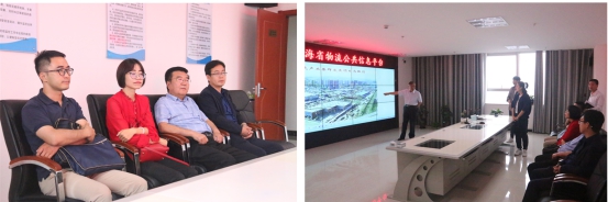 黨委書記、董事長王玉輝同志向考核小組介紹"三大園區(qū)"規(guī)劃建設(shè)
