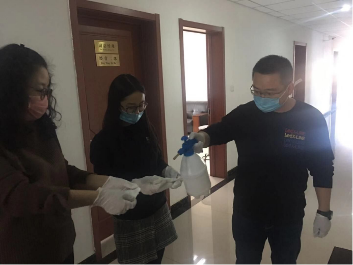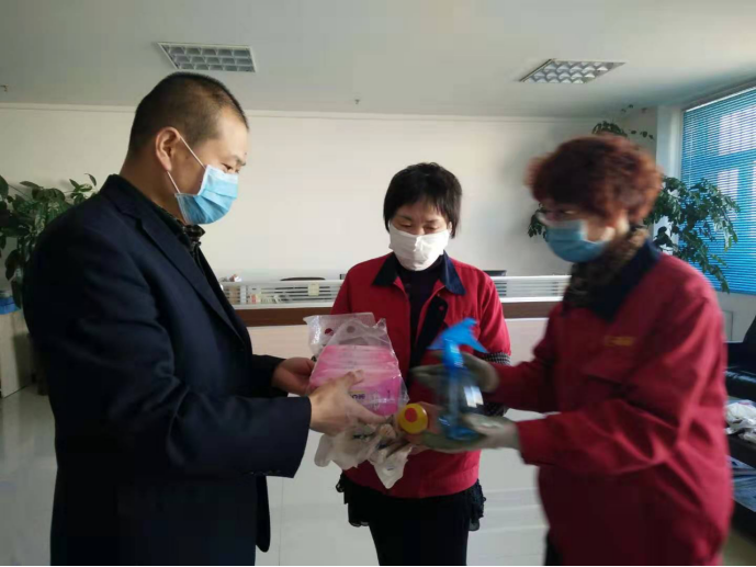 守護(hù)職工筑牢"安全防線":物產(chǎn)配送公司黨委通過配發(fā)酒精40公斤、84消毒液6瓶、消毒濕巾等防控器具,及時(shí)組織黨員指導(dǎo)職工進(jìn)行防控工作,重點(diǎn)對(duì)宿舍、辦公室、值班室、洗手間門把手、辦公桌椅等進(jìn)行噴灑消毒。